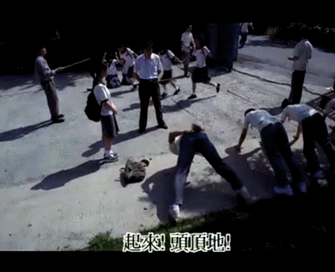 但是看这个电影能了解一些韩国的风土人情,比如在上个世纪九十年代,中学校门口会有教官处罚学生哦,他们是这样处罚的: