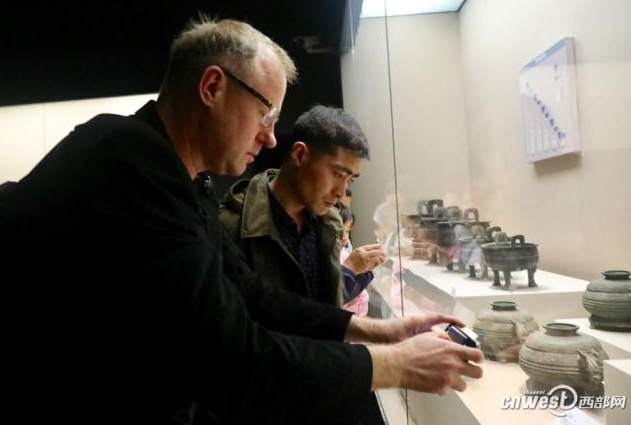 西部网讯(记者 陈婷婷 摄影 赵昊) 4月1日,“中华文明凝心铸魂之旅”2018全国网络媒体采访在陕西历史博物馆启动。启动仪式后,采访团一行参观了陕西历史博物馆何家村窖藏出土文物展。