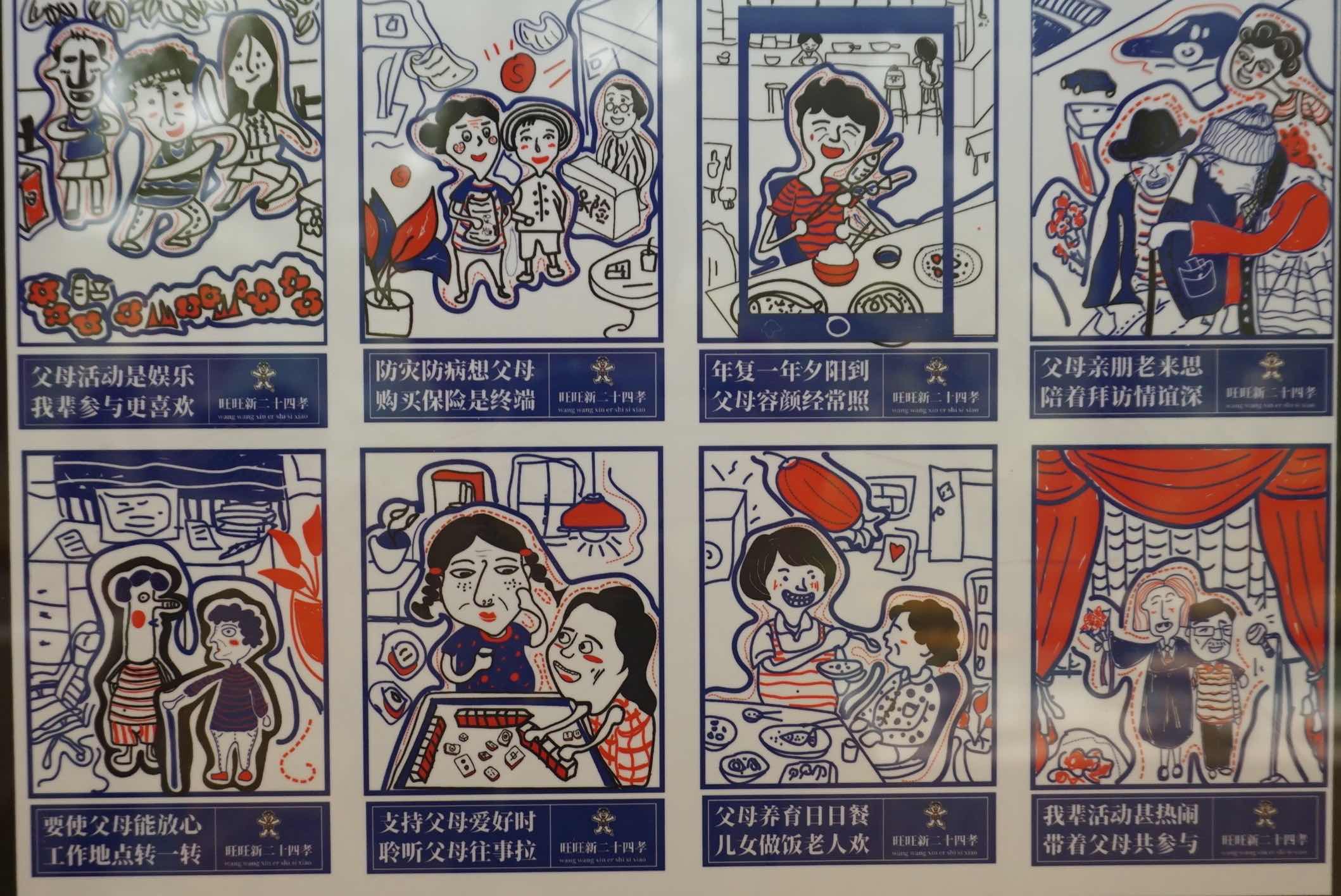 旺旺集团连续两年发起「公益广告」征选,以「现代人孝顺的方法」为主题创作,受到华人地区1210所院校师生积极响应。大赛共收到10000多件参赛作品,经过三个阶段的层层评选,选出优秀创意。并从中精选归纳出24个孝亲好习惯,汇编成「旺旺孝亲三字经」。经书韵律结合水墨漫画的表达方式,易于朗读、传播和记忆的特性,易于传播,用以推广孝亲好习惯。