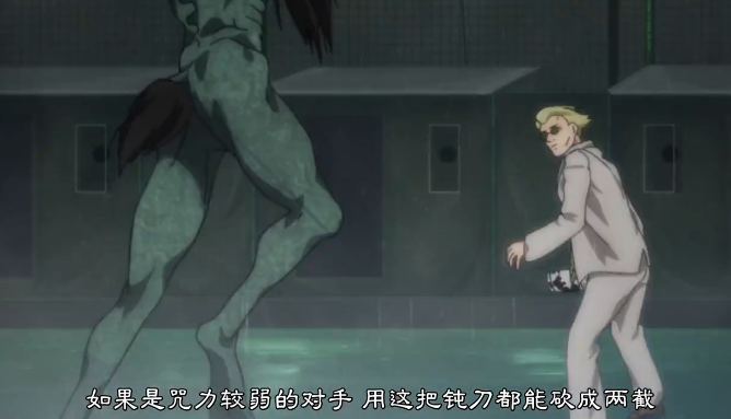 小编注意到他的那把刀,裹着很厚的布料,秒掉普通咒灵只用了刀背。试想一下,在现实生活中要想用刀背却切猪肉,切到天荒地老都不一定能切动,这就是找到弱点的好处,只要能砍中弱点,无论是不是刀背,都能造成一定的伤害。