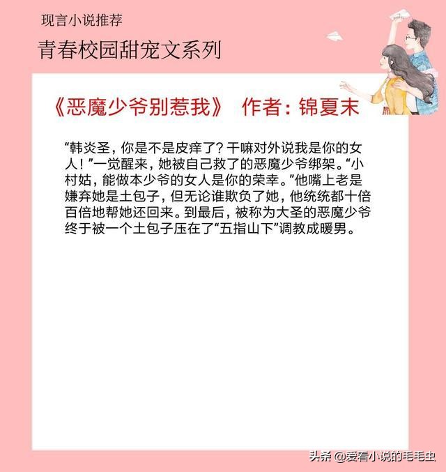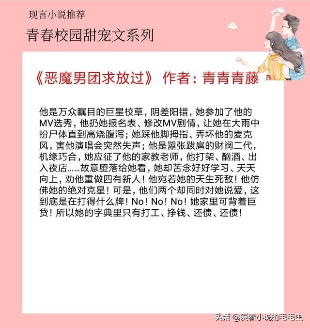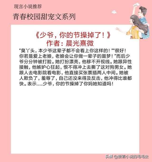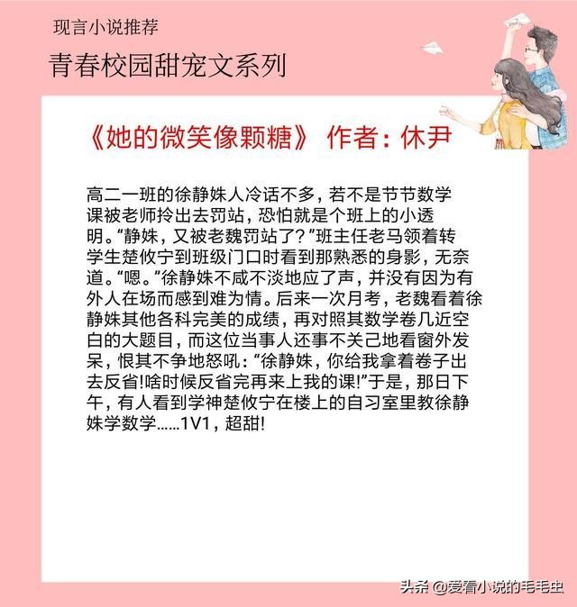 大家好,我是毛毛虫,今天推荐5本青春校园甜宠文,《她的微笑像颗糖》超甜,从校服到婚纱!