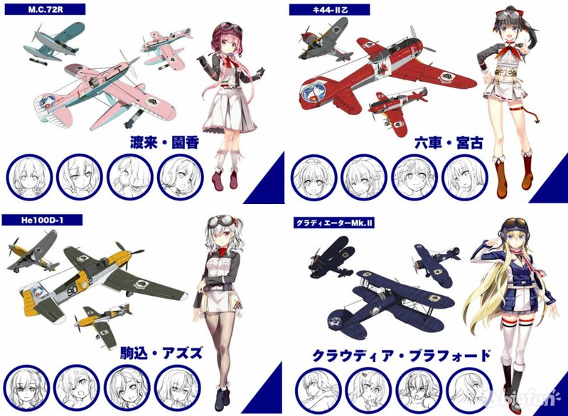 (主要小队成员及其机配,右上粉毛原型机应该是m.c.72螺旋桨引擎水上飞机,不是战斗机系)