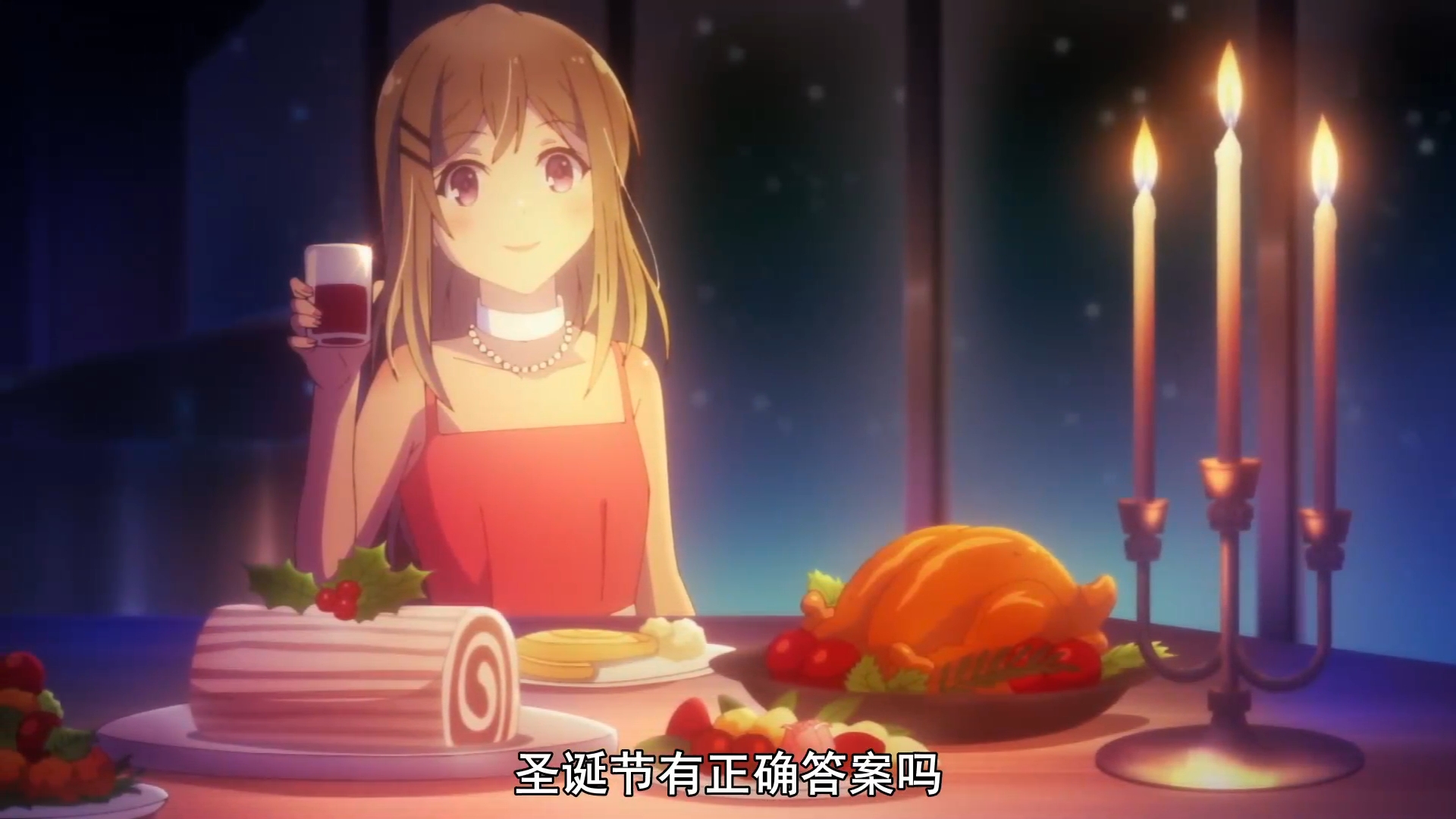 你猜安达是穿何种服装去圣诞约会的呢?估计你猜破头也不会想到,她是穿着旗袍(加大衣)去约会的,这可是十二月,难道不冷吗?这让我不禁想到了《命运之夜天之杯》中樱在雪地里穿着凉鞋等士郎的情景,不得不说日本人还真是耐冻呢,这点不服不行。