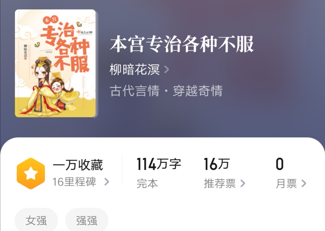 3、《本宫专治各种不服》,作者柳暗花溟,全文110多万字。