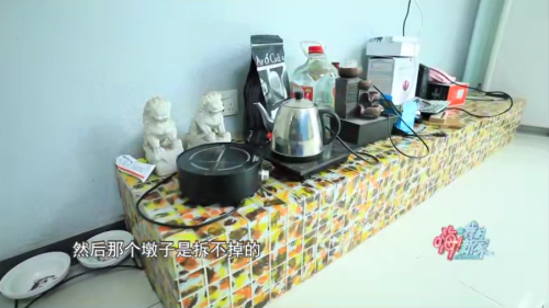 各种杂物堆在过道,不大的办公区还要腾出折叠饭桌的位置,员工吃饭要站着;