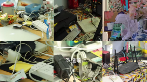 手机充电线、电脑电源线、路由器、各种电线缠绕在一起,插线板从东扯到西;