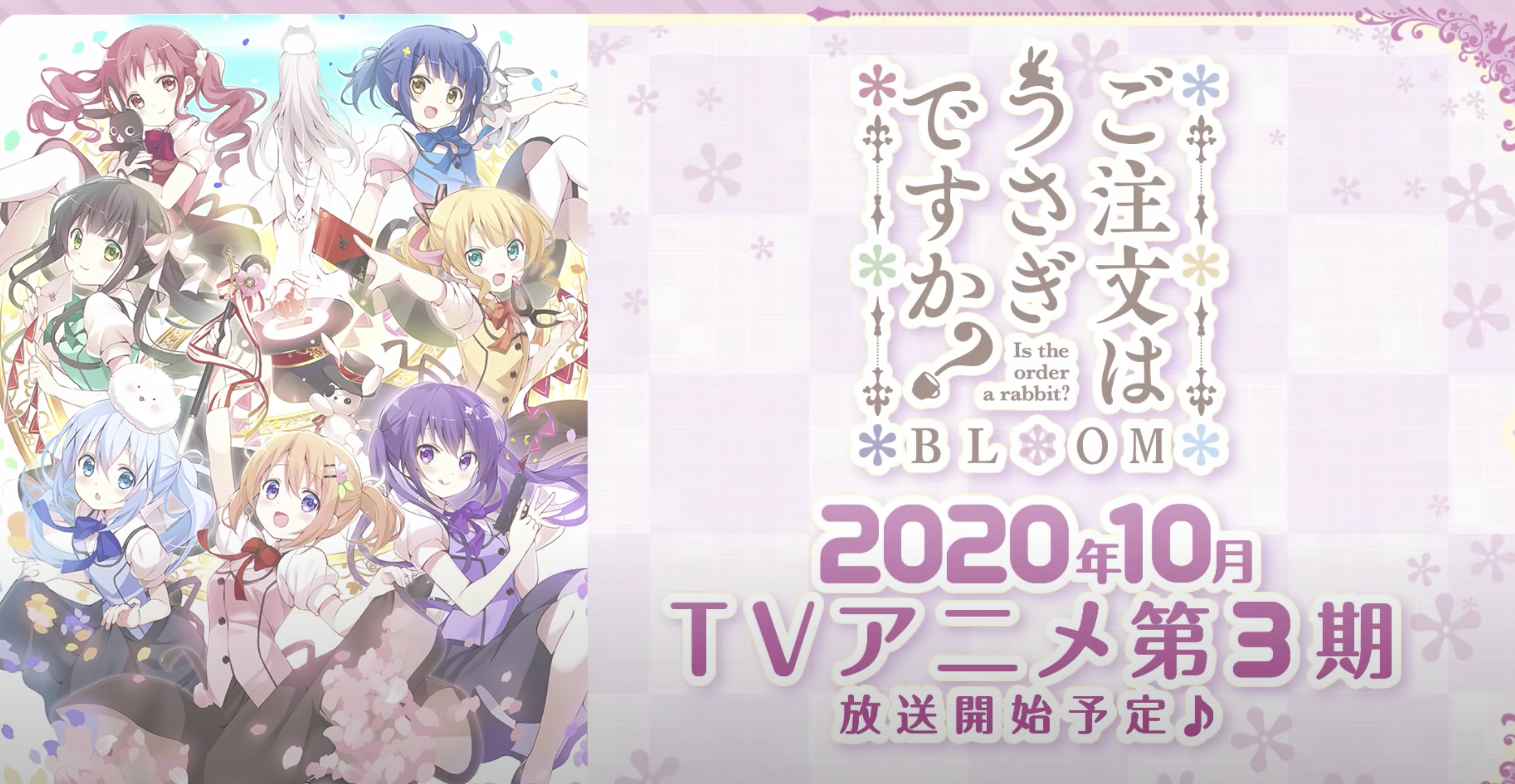 芳文社的经典漫改动画《请问您今天要来点兔子吗?》会在今年10月迎来第三期,标题为《请问您今天要来点兔子吗?bloom》。官方已经放出了pv。