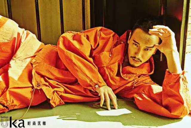橘色褶皱外套:feng chen wang