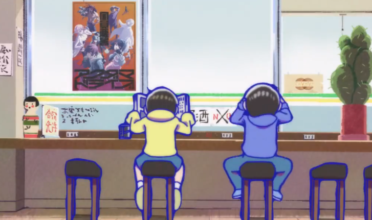 而同样的《阿松》第三季第二话中,空松和十四松所在的便利店墙壁就贴满了《全员恶玉》的海报。