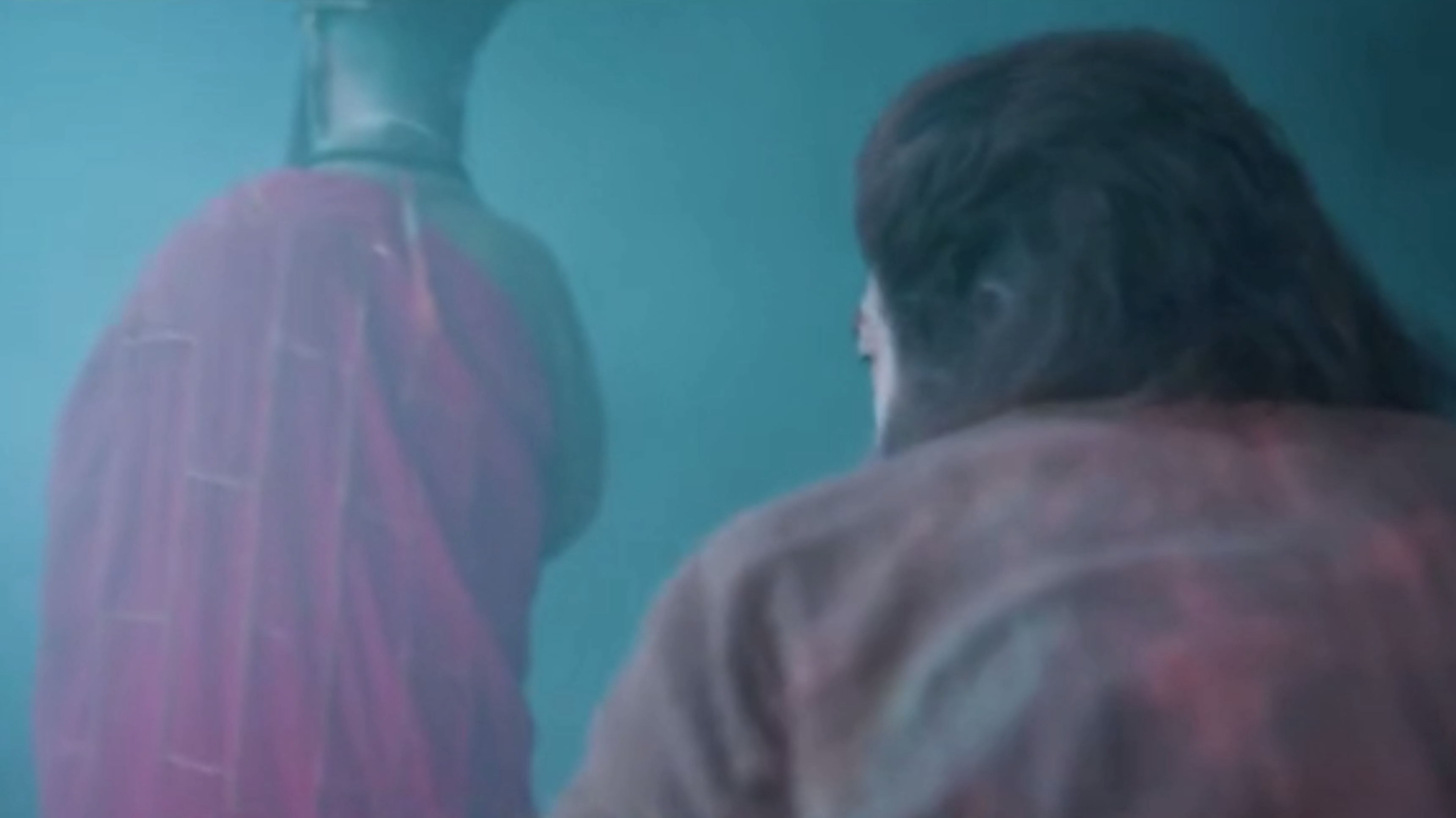 黄眉靠着主人的法器,将孙悟空的灵力封印,在生死场中,孙悟空被迫拿起竹棍和牛魔王对垒,曾经的拜把子兄弟牛魔王也被黄眉下蛊,失去了心智。在场真正清醒的只有这个女人——铁扇公主,孙悟空被打的浑身是伤,一个花果山的老猴子,主动来到身边照顾自己的大王,后来又来了一个不会说话的小猴子,没有法力的老中青三代,根本就不可能逃出这个魔窟。