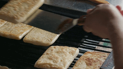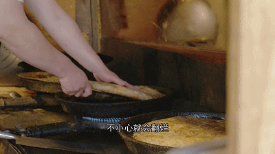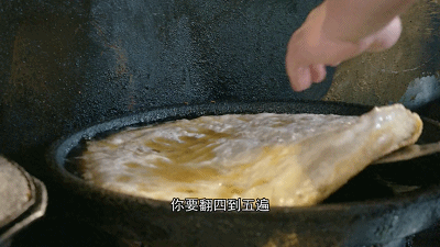 这小伙大概是练过无情铁砂掌,面对高温煎炸的油锅,也没戴手套,直接上手翻馍。