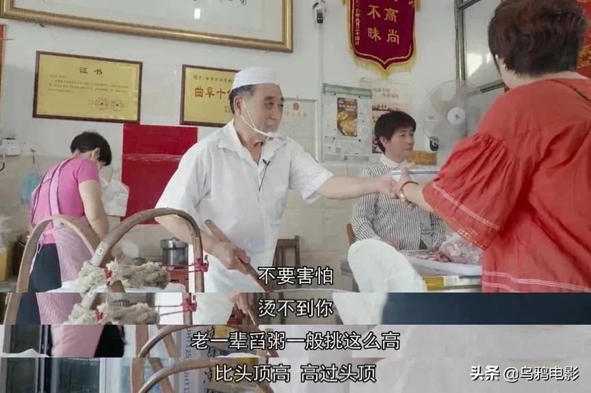 有些顾客看这架势,急忙闪躲,大哥笑着解释说:甭害怕,烫不到你的,老一辈舀粥勺子都高过头顶呢!