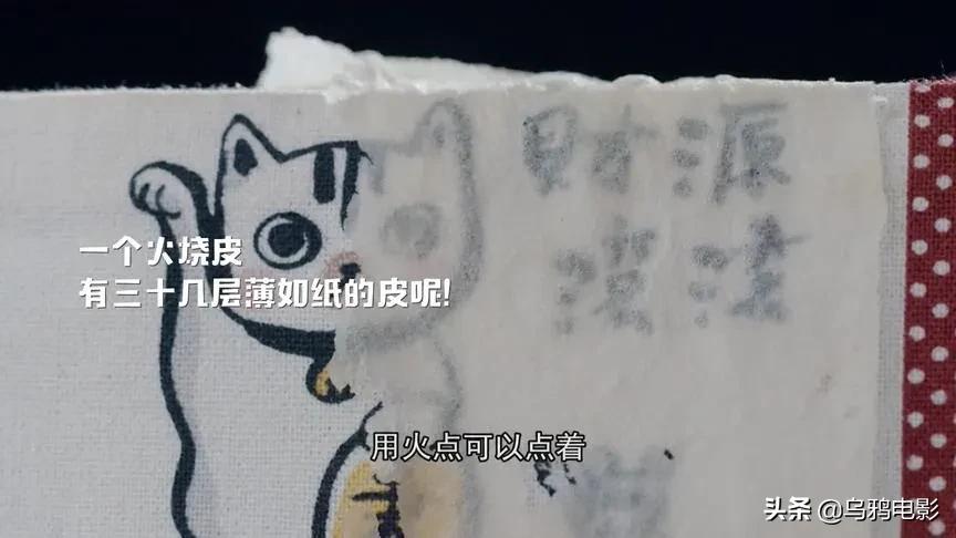 一个火烧有三十几层的皮,每一层都薄如纸,不仅可以透光,可以透字,还能用火点着。