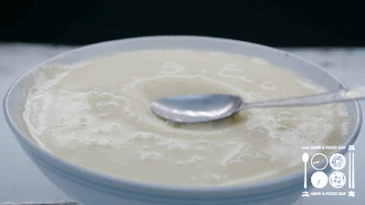 说到舀粥,这位大哥的勺子可不一般,估计比他的拳头还要大。