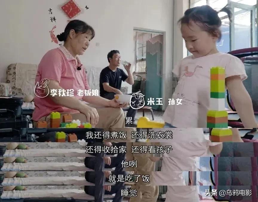 老板娘听了这话可不乐意了:累?!我还得煮饭,还得洗衣裳,还得收拾家,还得看孙女...你咧?就是吃了饭,睡觉!
