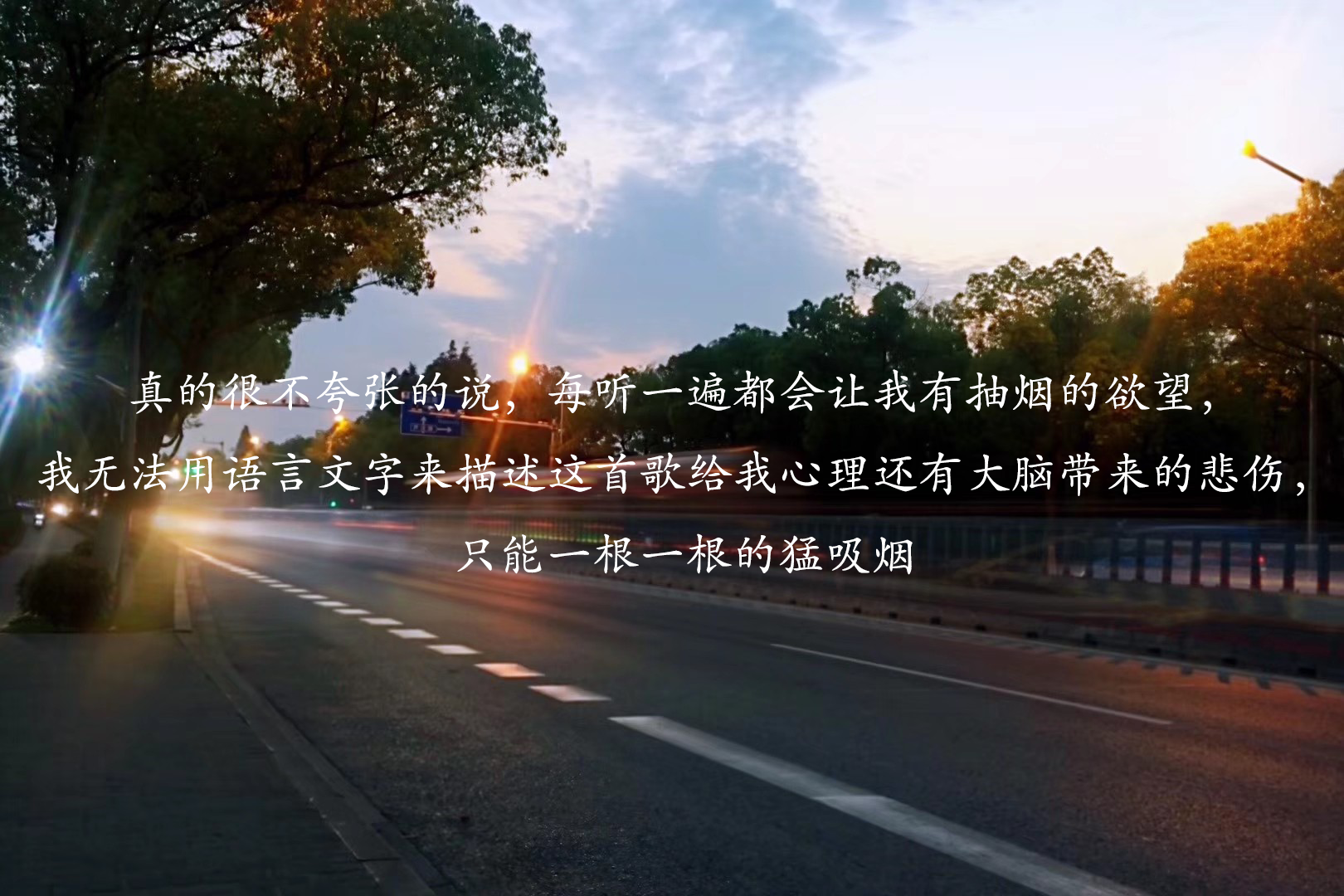 真的很不夸张的说,每听一遍都会让我有抽烟的欲望,我无法用语言文字来描述这首歌给我心理还有大脑带来的悲伤,只能一根一根的猛吸烟