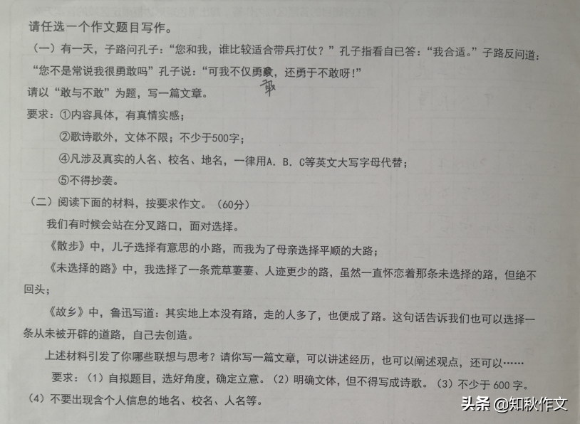 知秋老师以为,“敢与不敢”,这个题目,分明就是要学生就两者的关系,做一个辩证的阐述。