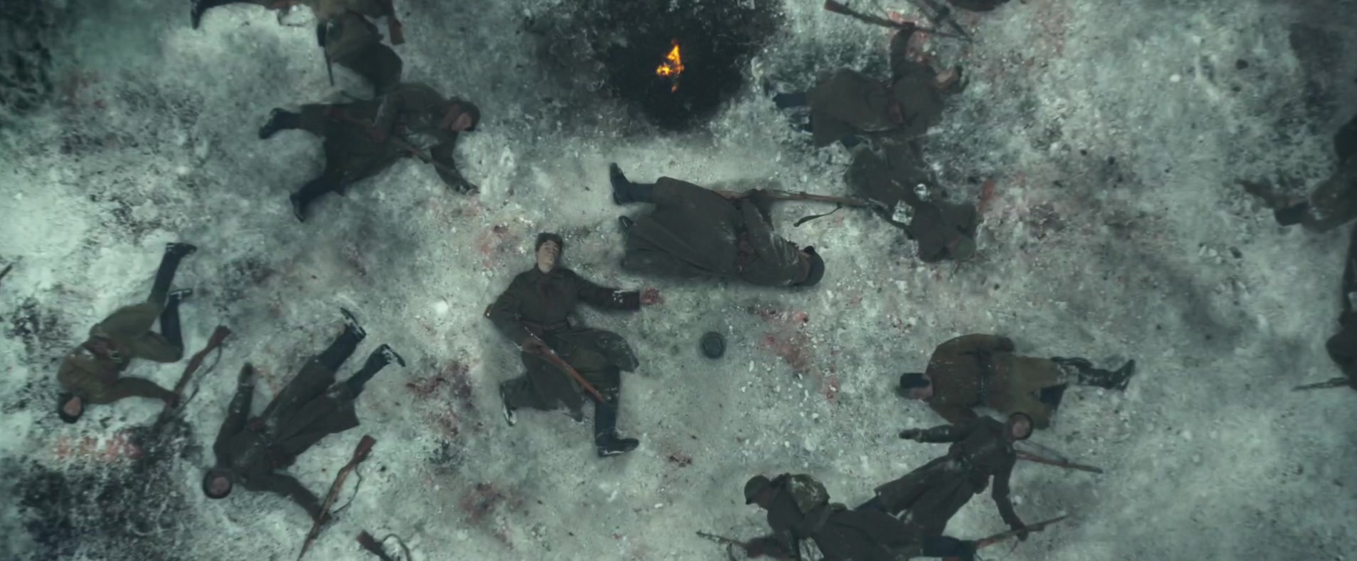 的确,这场战役以苏军的惨败告终,电影结尾部分,一名苏军士兵偷听到德军即将炮轰后告知所有战友躲避,跟这样的描写略微不同的是,历史上的红军并没有像电影里那样躲开了德军密集炮火的偷袭,而是暴露在广阔的雪原上,呆板的人海战术让苏军在还没有冲到德军阵地时已伤亡惨重……虽然战争是残酷的,但是红军战士们也明白只有拼死血战才能赢取最终的胜利,哪怕这次战斗的唯一结果只有牺牲,他们也在所不辞。