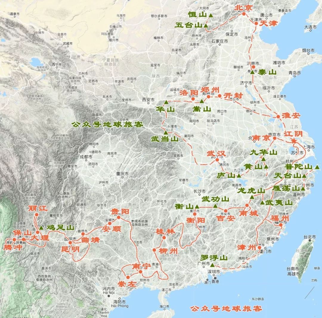 徐霞客旅行路线图
