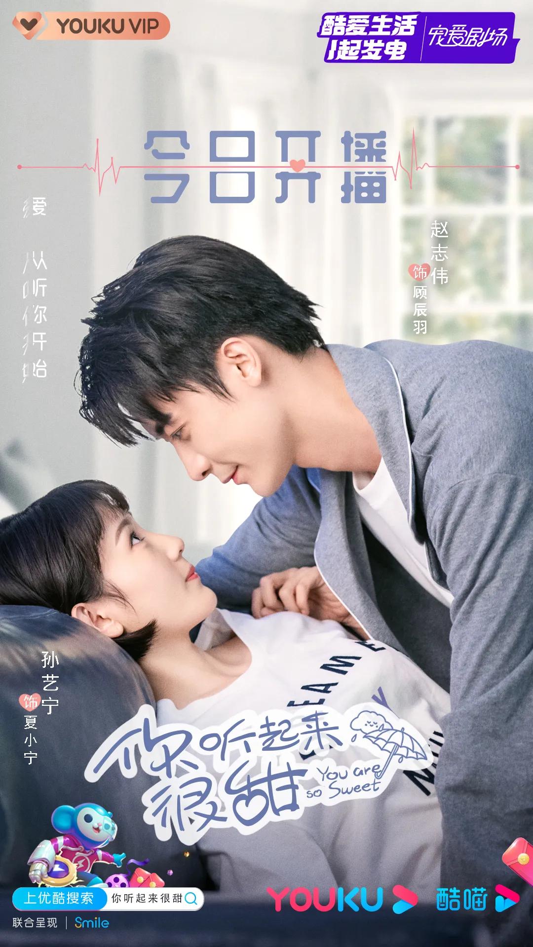 《你听起来很甜》11月5日20:00在优酷全网独播,会员每周三至周五更新2集,非会员周三至周六更新1集;11月14日10:00,vip会员尊享超前点播提前看下周。