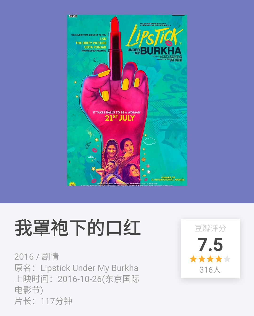 入围第29届东京国际电影届,却因为大胆的思想主题而遭受到了印度广电的『封条』。
