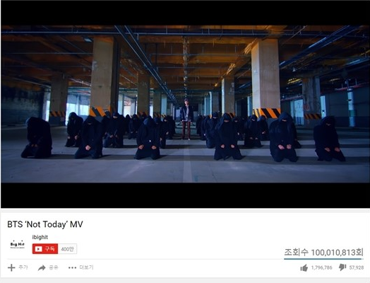《not today》mv点击量破亿 防弹再次书写男团新历史