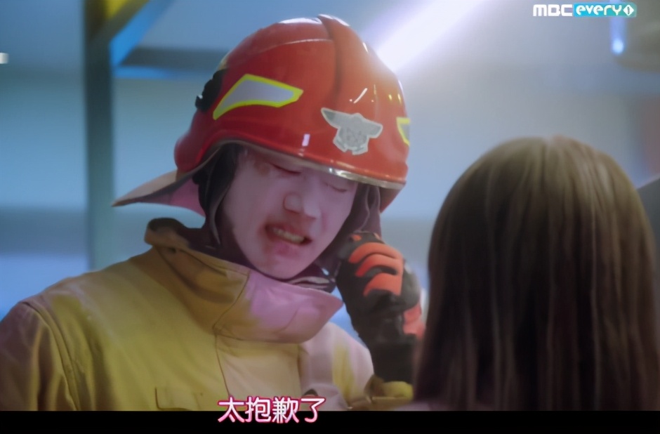 接警赶来的消防员郑国熙到达现场时火已经熄灭了,在郑国熙教学徐智成正确使用灭火器的时候,憨憨小徐再次发动,喷了郑国熙一脸粉末,男女主的首次相遇就这样尴尬收场!