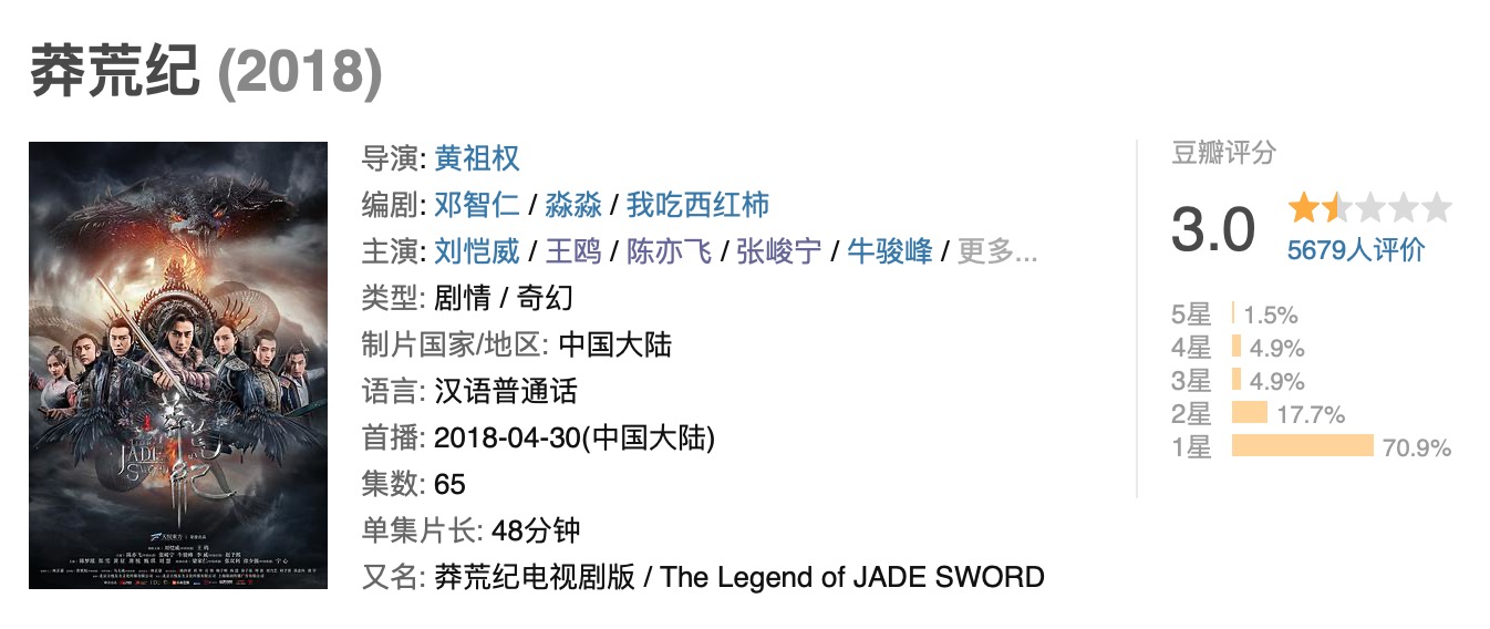 当然差评的原因和剧本门也脱不了关系,男女主人设同时崩塌,对剧集的影响不可估量,可即使如此,这部因剧本门扑街的剧集出番外了,这部剧叫《莽荒纪之川落雪》。