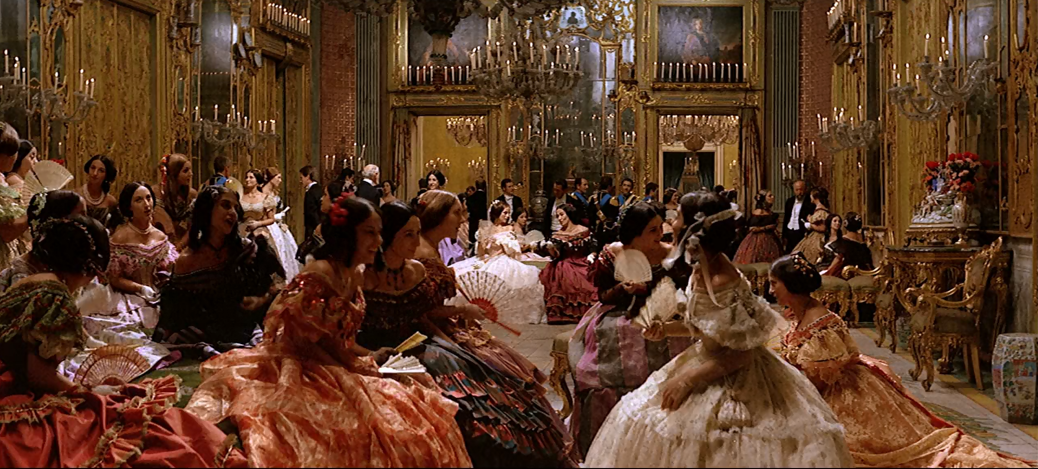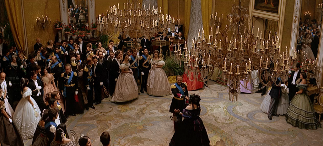 “我们是豹子是狮子,取代我们的是豺狼土狼。所有人,豹子、狮子、豺狼、土狼,我们都觉得自己很高尚。”这里不妨看作是导演对时代变动所发出的感叹,没有什么变化,只是细微的阶级更替。影片后半部分,导演用了50分钟来表现一场舞会,也许只有贵族出身的他,才能如此精确的提炼那个时代的感觉,令人眼花缭乱的服装,油画般的质感。