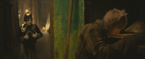 喝酒的一幕,液体的流动像是特效没做完;而在垃圾堆里捡吃的这一幕,更是令人不安,让观众笑不出来。
