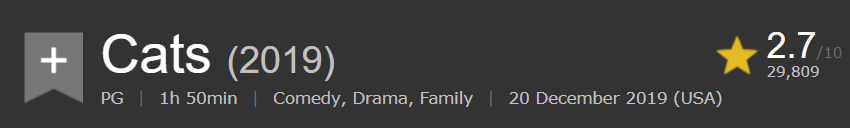 不知道《猫》的惨败能否让人们意识到一个事实:有些ip是不适合改编成电影的。