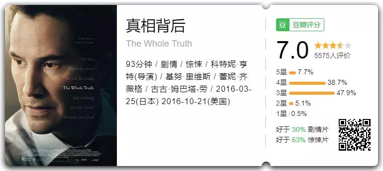 当初看这部片完全是冲着男神的名号,结果发现片子本身质量不错,写实风格的画面,节奏称得上紧锣密鼓,为了节省篇幅,甚至开场仅仅用了不到2分钟,就通过基努的内心独白概括了整个案情。就剧情来说脑洞挺大,网上说反转不给力的同学,基本没看懂电影。三重反转,细节很多,具体的就不说了,毕竟说多了怕剧透。