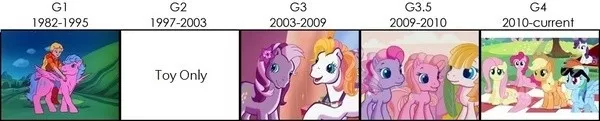 《彩虹小马》(my little pony)这一品牌最早源自孩之宝1982年开发的一款玩具,当时美国两大玩具厂商孩之宝(hasbro)和美泰(mattel)相互对抗,前者拥有变形金刚、星球大战等多个玩具品牌,而后者则手握着风靡全球小女孩们最爱的玩具芭比娃娃。孩之宝为了对抗美泰开发了第一代(g1)彩虹小马系列玩具,并且还推出了动画版《彩虹小马》(g1)来推动玩具销量。当时为了宣传一系列玩具而推出动画、漫画作品这招屡见不鲜,即便是marvel、dc也是如此。