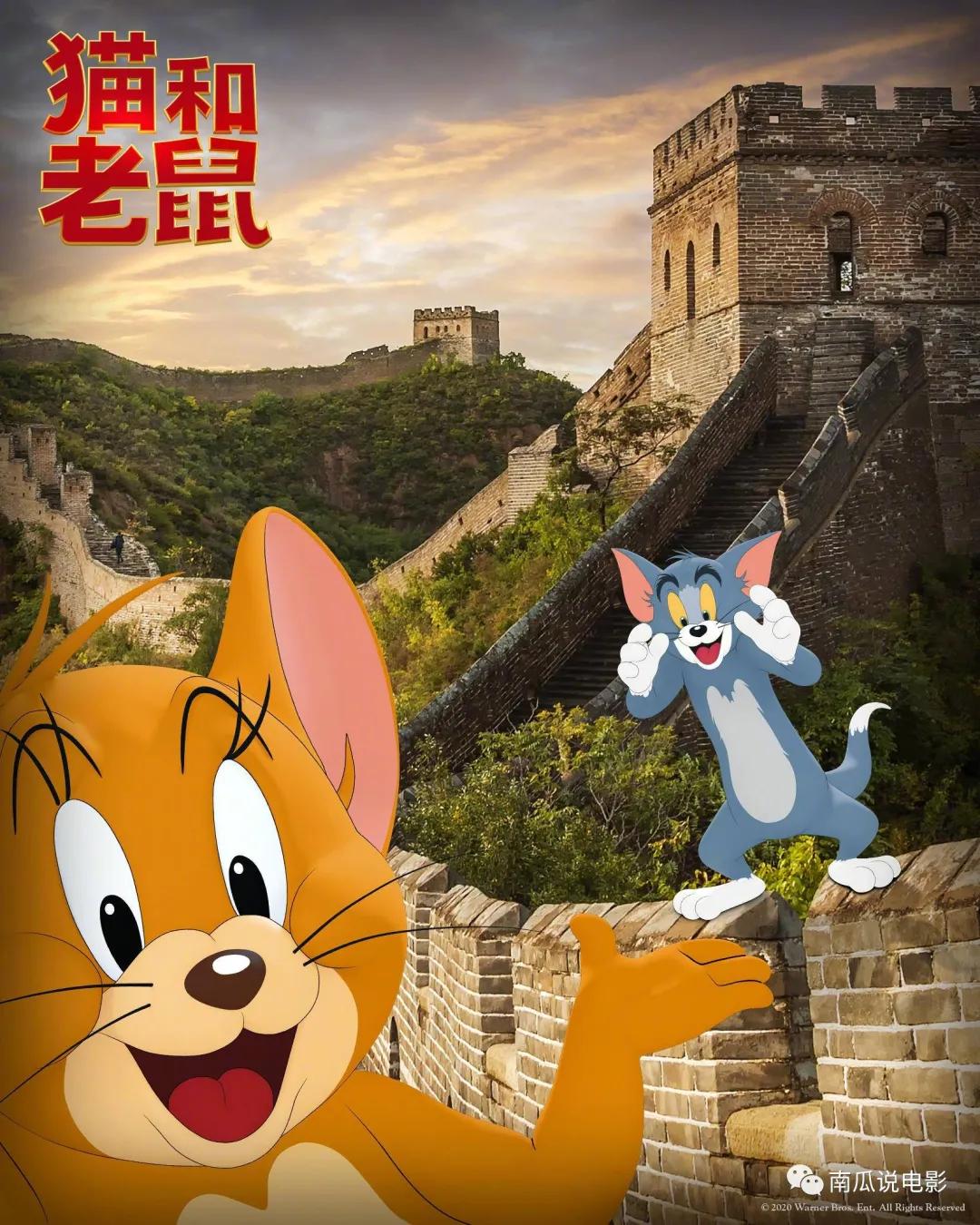 真人+cg打造的新版《猫和老鼠》电影两个主角通过黑科技来到了中国,长城走一遭。