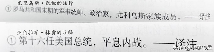 译者不仅为读者解释了这种“冷门”历史人物,为了照顾更多读者的阅读体验,她连热门历史人物凯撒、林肯,也在注释加以解释。