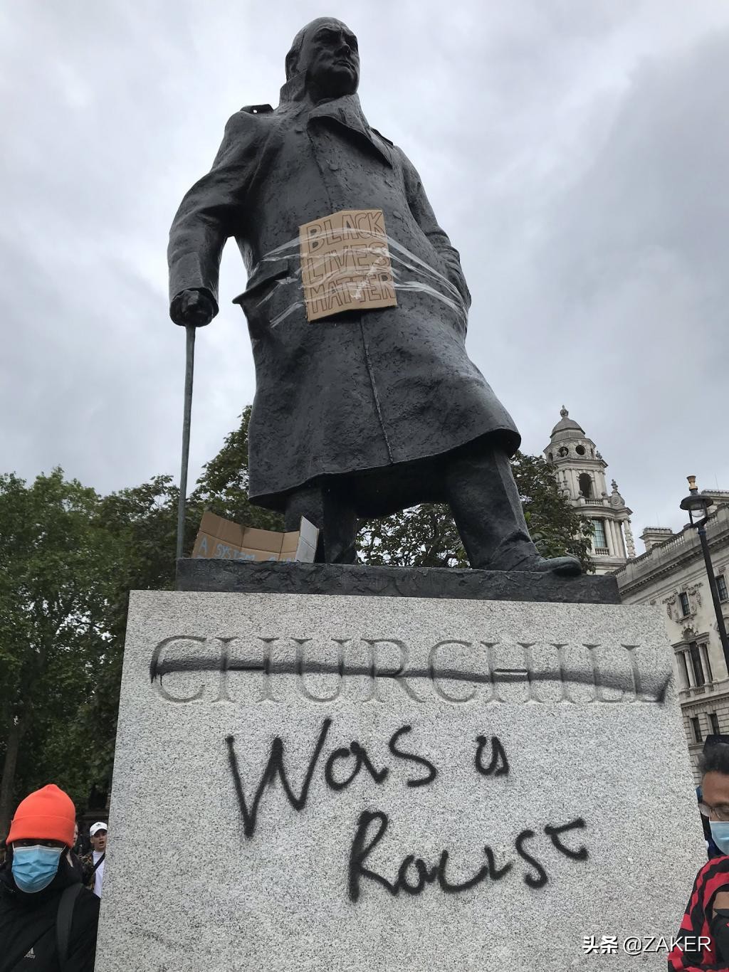 上周末,诺曼底登录 76 周年纪念日的时候,丘吉尔在在英国的纪念碑却遭到破坏,抗议 " 黑命贵 " 的人直接在他的雕像下面写 " 丘吉尔是个种族歧视者 "。不过涂鸦很快就被清理了,首相也发声谴责这种行为。