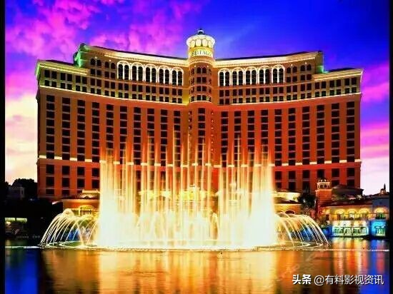 拉斯维加斯贝拉吉奥豪华酒店位于拉斯维加斯大道的中心,酒店前著名的音乐喷泉是拉斯维加斯的地标之一,其音乐,灯光和喷泉表演的完美配合每天吸引着成千上万的游客。