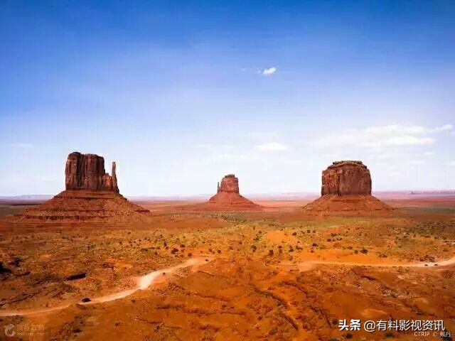 纪念碑谷是美国十大迷人沙漠之一,风景雄伟,这片土地多次被作为好来坞西部片的外景和电视广告的背景,较有名的则是《阿甘正传》