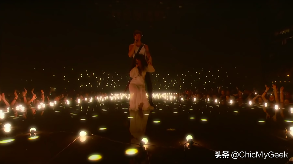 舞台上的灯海,加上两人充满诱惑和勾引的眼神和歌声,这段表演就是勾尽观众胃口,太浪漫太好看了!
