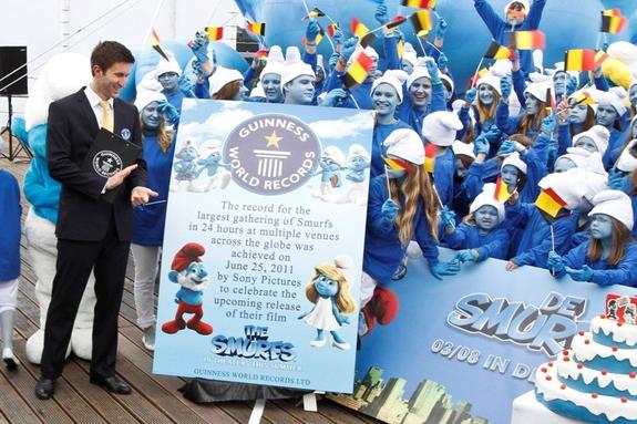 在2011年蓝精灵的诞生地比利时布鲁塞尔,来自全球11座城市的4891位忠实粉丝汇聚一堂,创造了新的吉尼斯世界纪录。