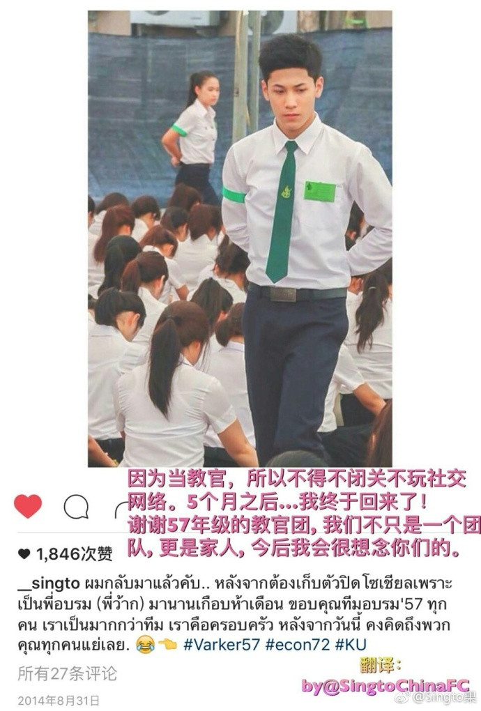这段影响到singto人生转折的经历,现在狮子回想起来还是感到无比骄傲~~~
