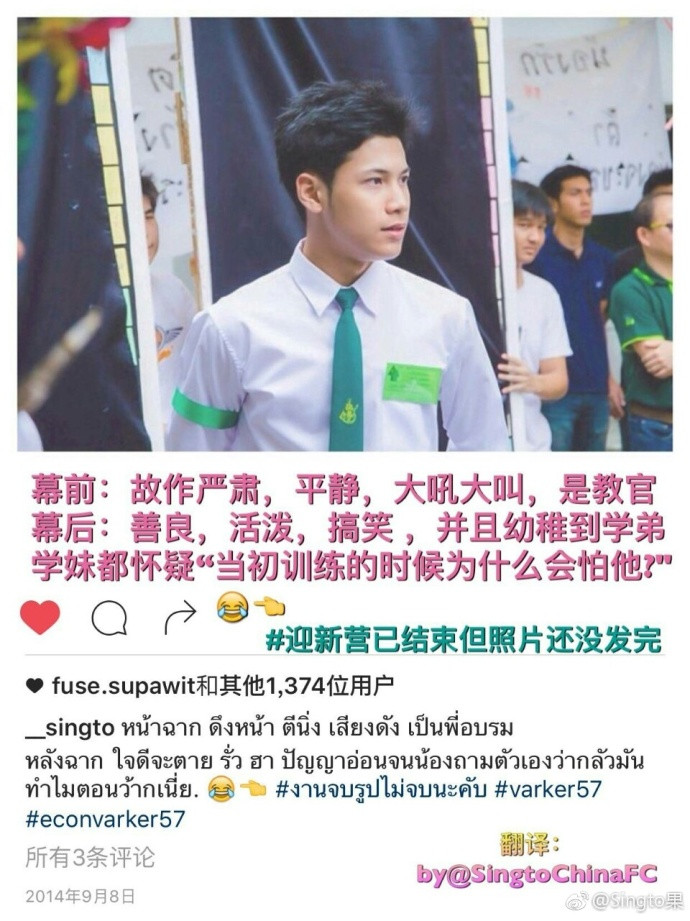 而且是个严厉合格的教头,krist当时是学弟,被singto训练。