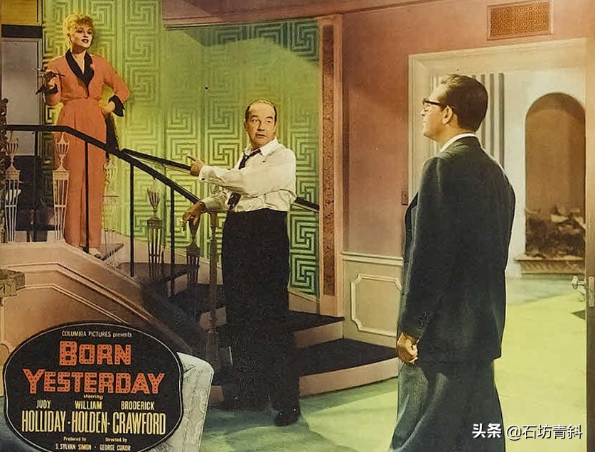 电影《绛帐海堂春/出位妙女郎born yesterday》(1950)剧照,从左至右:朱迪·霍利德judy holliday布罗德里克·克劳福broderick crawford威廉·霍尔登william holden