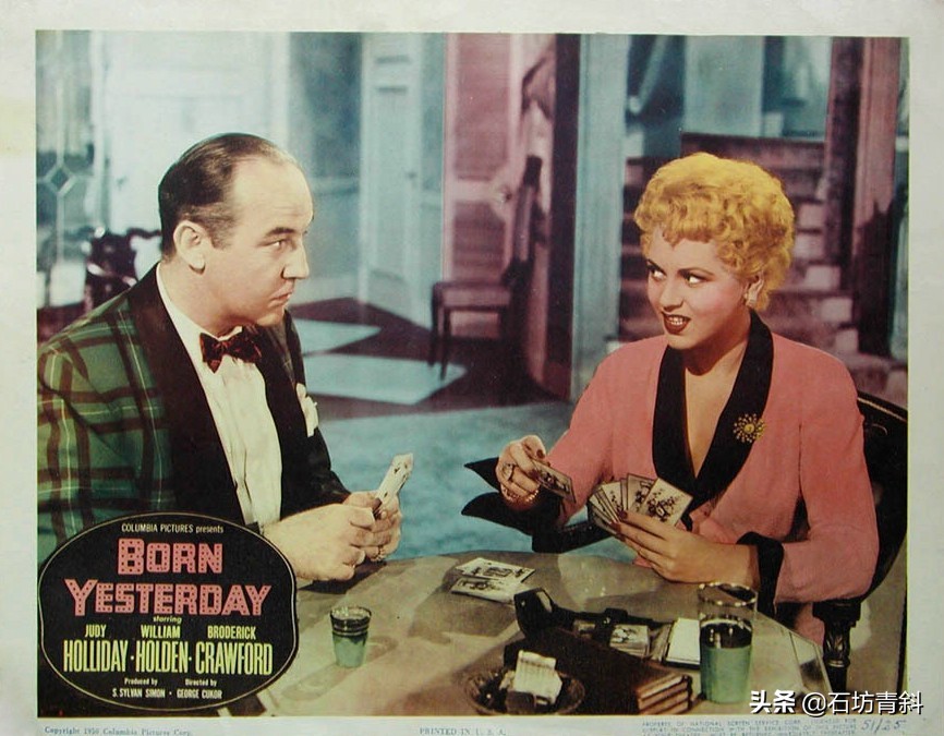 电影《绛帐海堂春/出位妙女郎born yesterday》(1950)剧照,朱迪·霍利德judy holliday和布罗德里克·克劳福broderick crawford玩纸牌