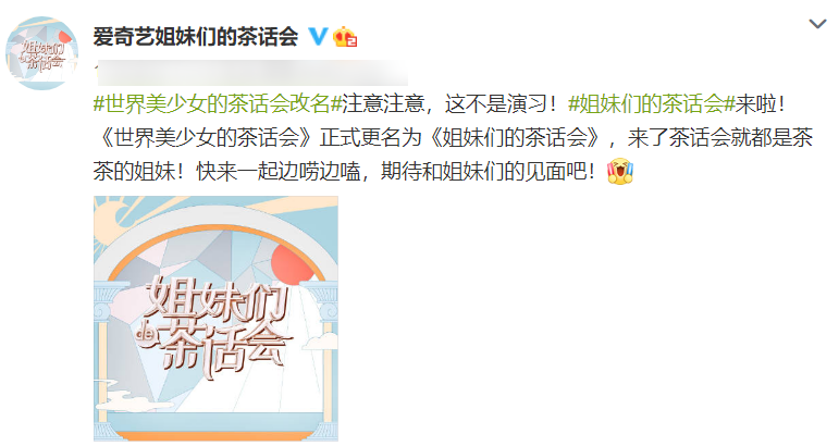 不知道大家有没有关注到这档《姐妹们的茶话会》的真人秀节目呢?其实这档节目已经官宣很久了,之前是叫《世界美少女的茶话会》这样的节目名,但是在近期官方也发文官宣了这档节目改名的消息的,但是也依旧抵挡不住大家对这档节目的期待。