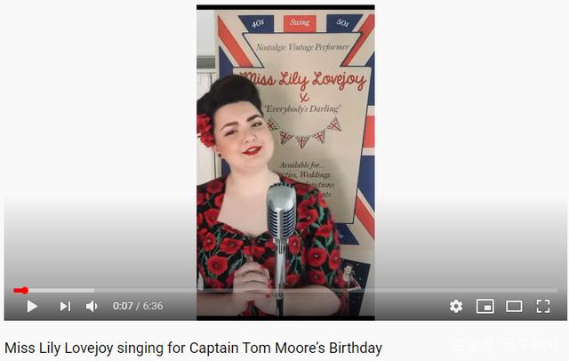 二战时,最受英军官兵欢迎的女歌手“三军甜心”薇拉·琳恩(vera lynn),已经是103岁高龄,她写信给汤姆上尉,“这是一个多么美妙、令人震惊的成就。你能告诉我你是怎么做到的吗?”汤姆上尉边读信边说,“这是一位非常特殊的女士寄来的。”在汤姆上尉生日当天,薇拉·琳恩还特意涂红了嘴唇,穿上红裙子,头戴两朵红花,录下一段演唱视频传给汤姆上尉。