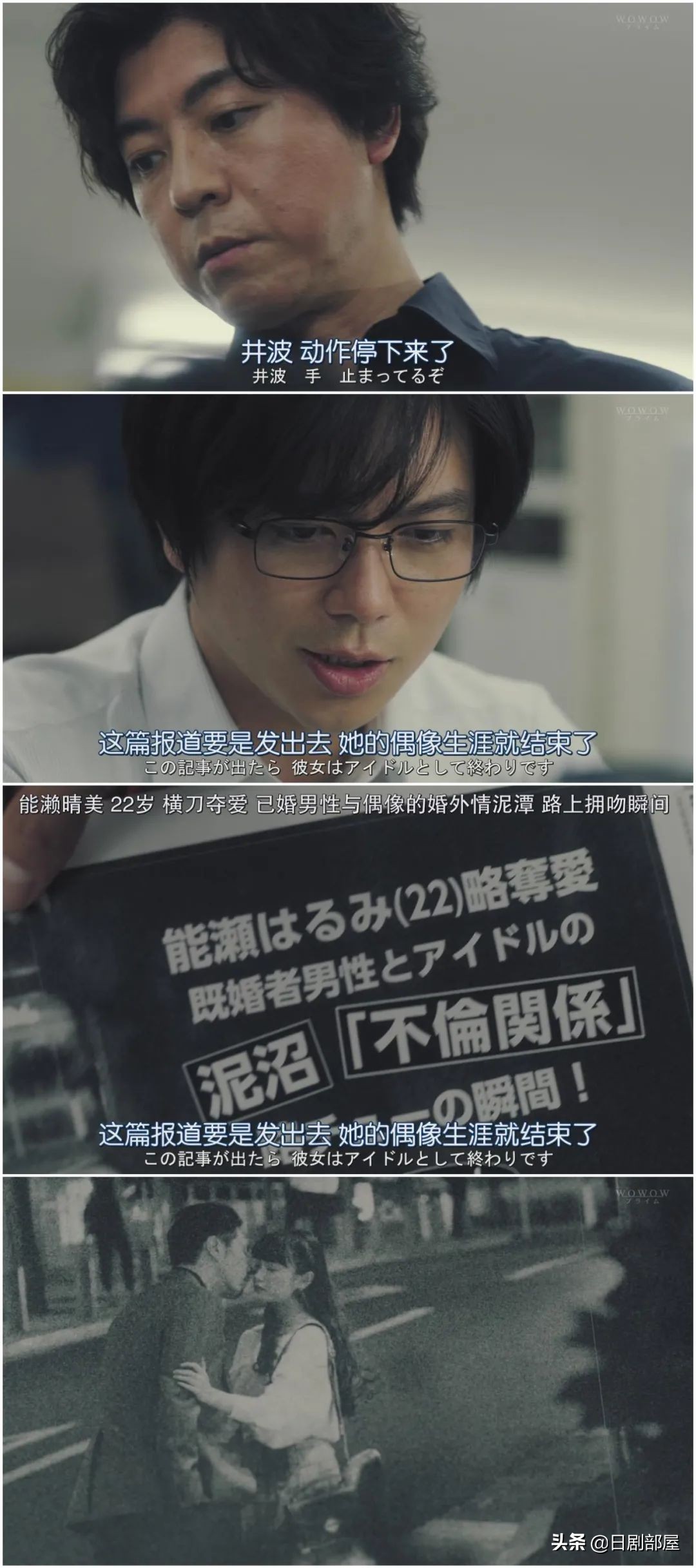 井波是这个偶像的粉丝,担心自己的报导会毁了偶像的工作,日本艺能界对一人品行要求高,一个丑闻可能会大大影响职业生涯。