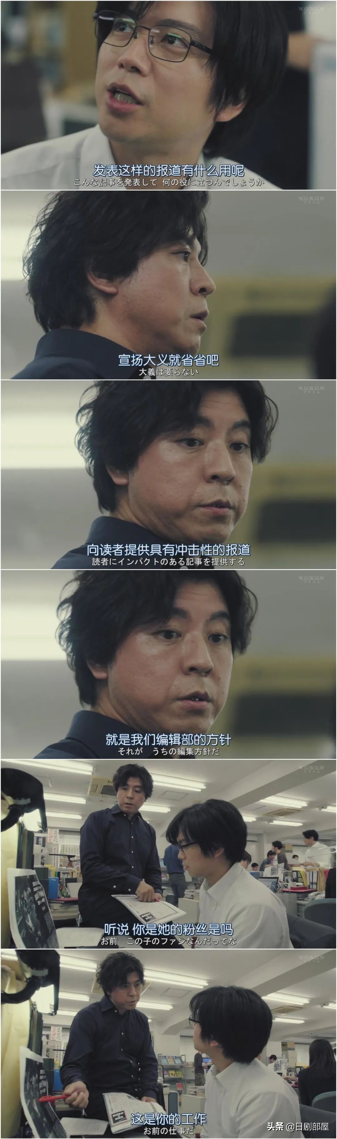 虽然当了多年记者的志贺内心强大,但他妻子的精神处于奔溃边缘,杂志社也顶不住社会压力,决定将他降职流放。