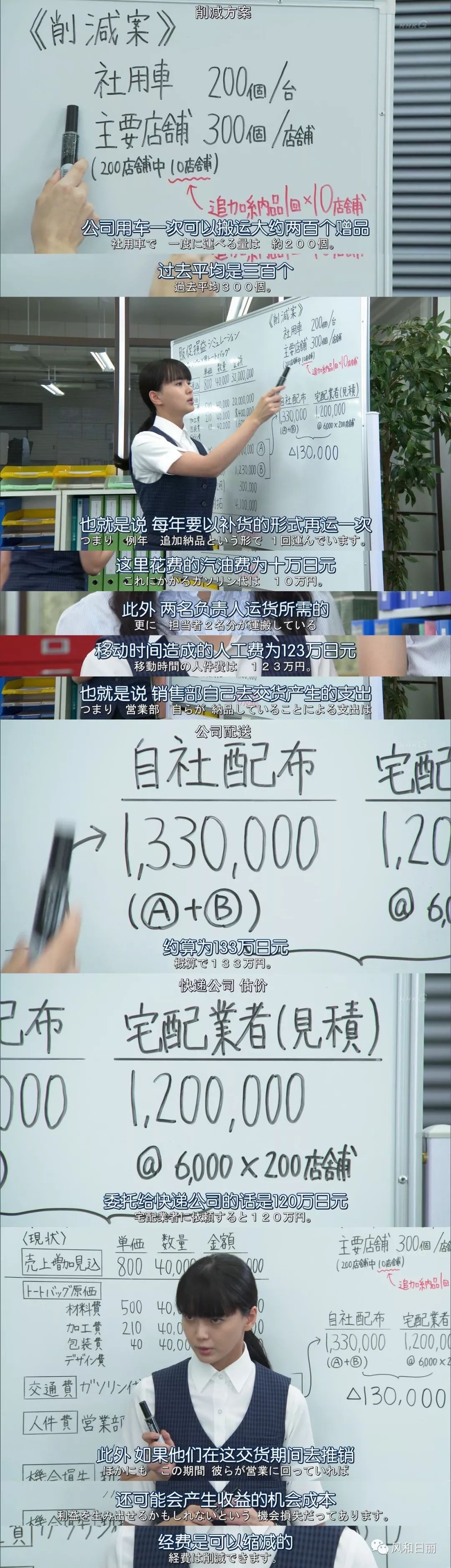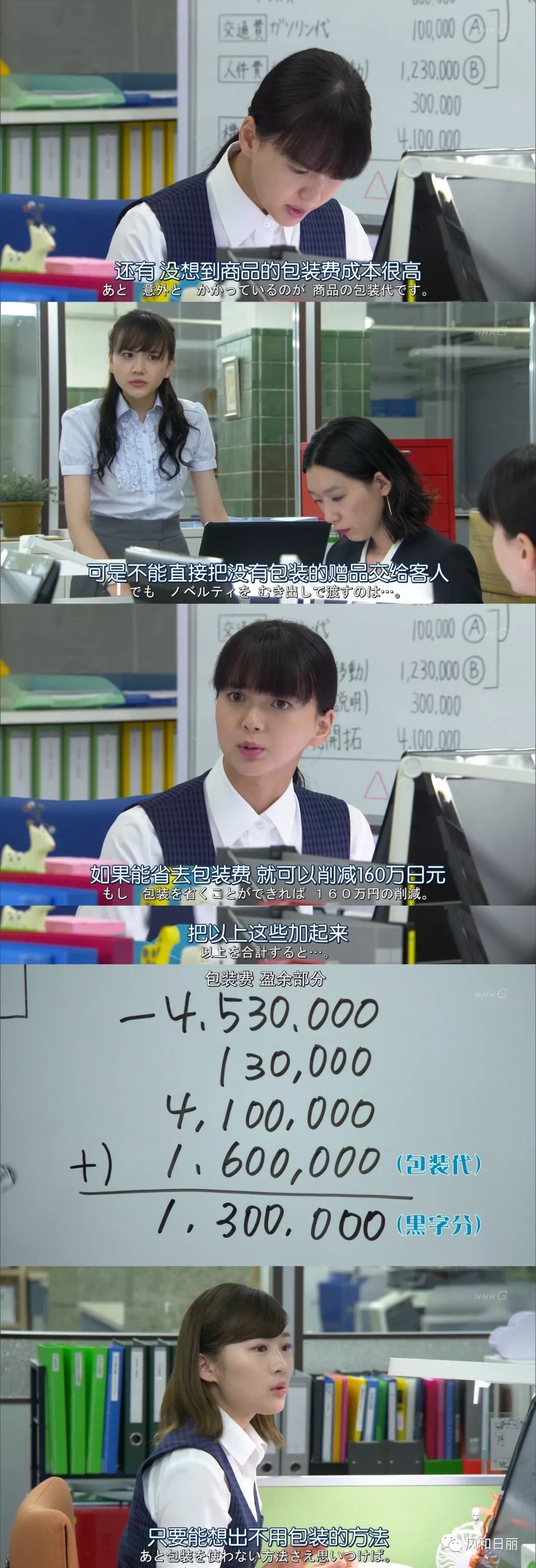 其实不然,会计小姐姐把各项支出全部列出来,精准计算后发现:外包给快递公司做更实惠。(很喜欢日剧里的这些职场工作细节,剧组诚意满满,观众看得特别舒心)