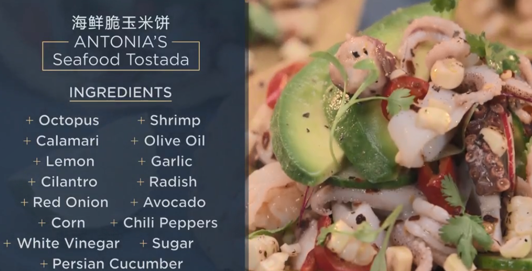- 将牛油果、洋葱碎、黄瓜片、香菜碎、玉米粒、水萝卜片、鱿鱼圈、虾段、章鱼须碎、辣椒段混合,撒少量盐,柠檬汁搅拌均匀,放在?玉米饼上即可。